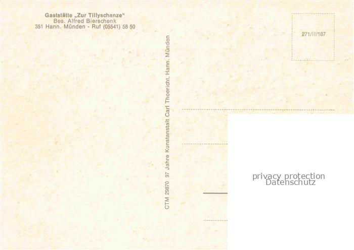 74026308 Hann. Muenden Gaststaette zur Tillyschanze Stadtpanorama Zusammenfluss von Werra und Fulda zur Weser postalisch nicht gelaufen Erhaltung siehe scans [FriedD77] KatCode: 11110003152016