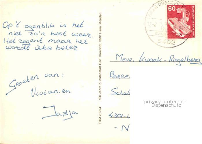 72904749 alte Postkarte Hann. Muenden Gesamtansicht Burg Bruecke postalisch gelaufen Erhaltung siehe scans [AndreD76] KatCode: 11110003152016