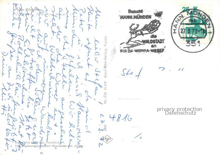 74044812 alte Postkarte Hann Muenden Hannoversch Muenden Goettingen Fliegeraufnahme postalisch gelaufen Erhaltung siehe scans [WerneD78] KatCode: 11110003152016