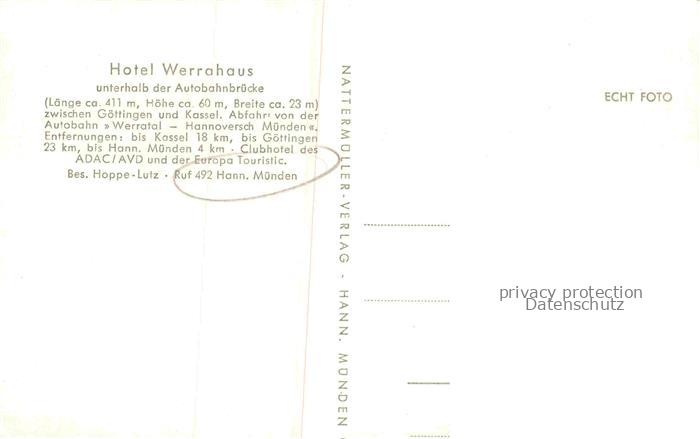74113406 Hann Muenden Hannoversch Muenden Goettingen Hotel Werrahaus unterhalb der Autobahnbruecke postalisch nicht gelaufen Erhaltung siehe scans [WerneD78] KatCode: 11110003152016