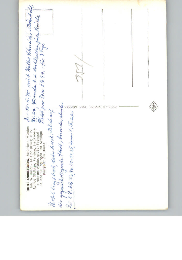 31130996 Hann. Muenden Hotel Andreesberg postalisch nicht gelaufen KatCode: