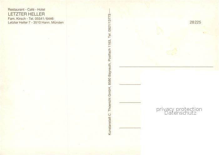 73569200 Hann. Muenden Hotel Cafe Restaurant Letzter Heller Landschaftspanorama Bruecke postalisch nicht gelaufen Erhaltung siehe scans [FriedD77] KatCode: 11110003152016