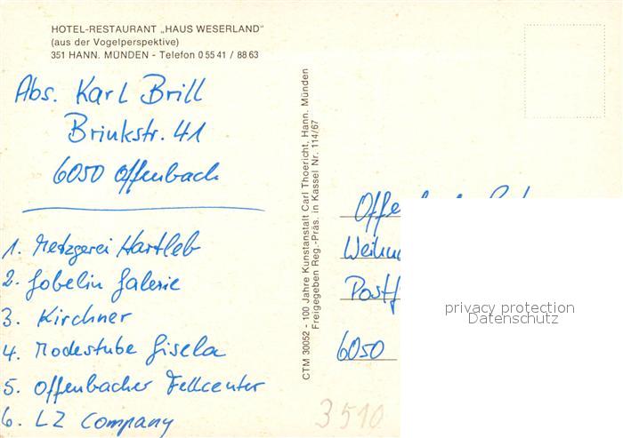 73322411 Hann. Muenden Hotel Restaurant Haus Weserland Fliegeraufnahme postalisch nicht gelaufen Erhaltung siehe scans [FriedD77] KatCode: 11110003152016