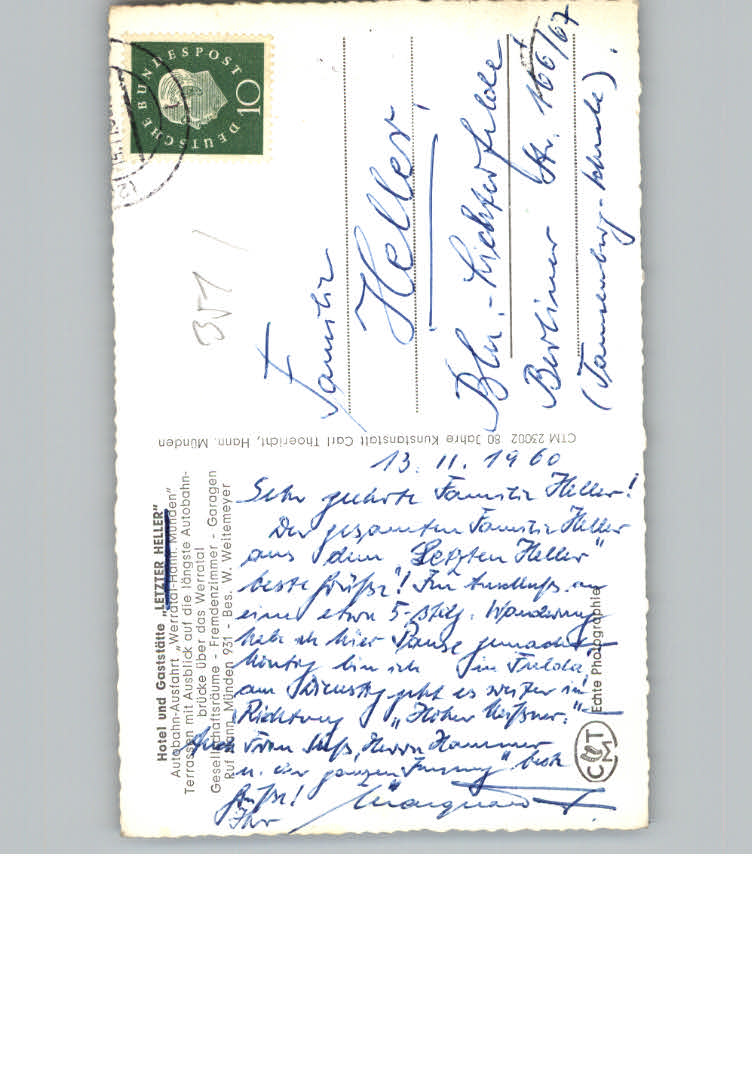 31130994 Hann. Muenden Hotel Restaurant Letzter Heller postalisch nicht gelaufen KatCode: