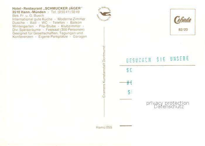 73204344 Hann. Muenden Hotel Restaurant Schmucker Jaeger Wappen postalisch nicht gelaufen Erhaltung siehe scans [FriedD77] KatCode: 11110003152016