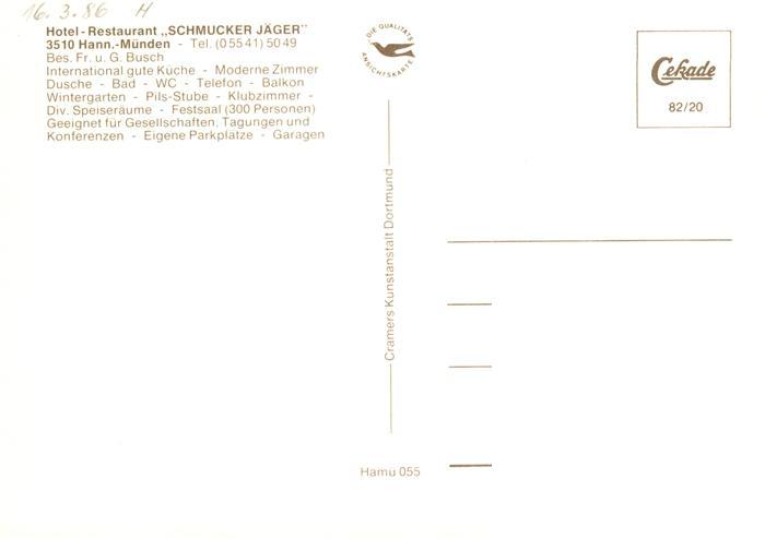 73896469 Hann. Muenden Hotel Schmucker Jaeger Gastraeume Gaestezimmer postalisch nicht gelaufen Erhaltung siehe scans [WerneD78] KatCode: 11110003152016