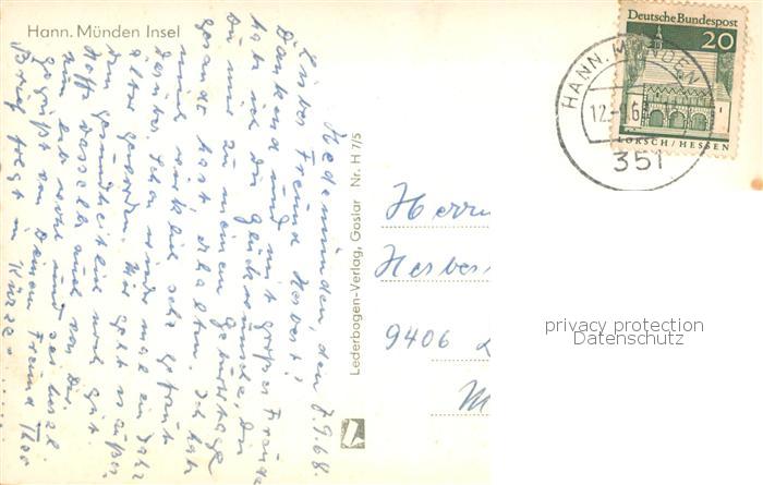 73768767 alte Postkarte Hann. Muenden Insel Panorama postalisch gelaufen Erhaltung siehe scans [WerneD78] KatCode: 11110003152016