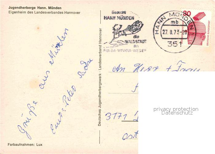 72814423 alte Postkarte Hann. Muenden Jugendherberge Ortsmotive postalisch gelaufen Erhaltung siehe scans [WerneD78] KatCode: 11110003152016