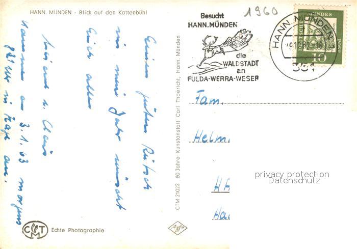 73282561 alte Postkarte Hann. Muenden Kattenbuehl postalisch gelaufen Erhaltung siehe scans [NatalD47] KatCode: 11110003152016