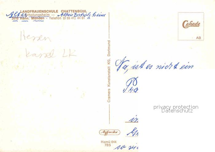 72905969 Hann. Muenden Landfrauenschule Chattenbuehl postalisch nicht gelaufen Erhaltung siehe scans [AndreD76] KatCode: 11110003152016