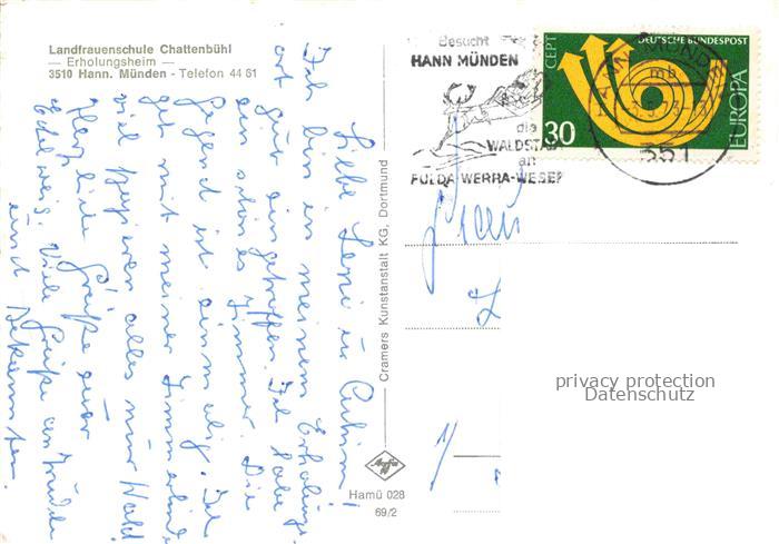74024140 alte Postkarte Hann. Muenden Landfrauenschule Chattenbuehl postalisch gelaufen Erhaltung siehe scans [WerneD78] KatCode: 11110003152016