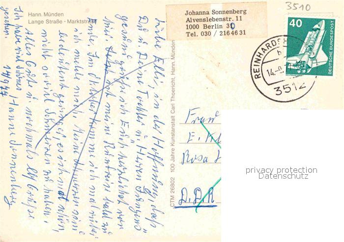 72909463 alte Postkarte Hann. Muenden Lange Strasse Marktstrasse Fachwerk postalisch gelaufen Erhaltung siehe scans [LiesaD40] KatCode: 11110003152016