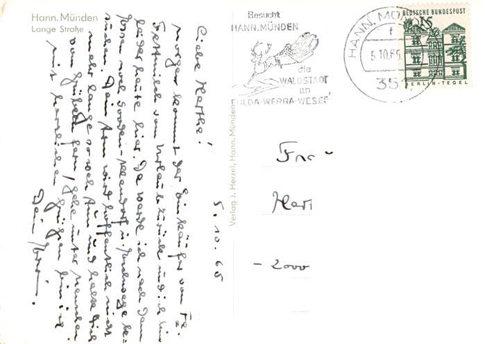 73889919 alte Postkarte Hann. Muenden Lange Strasse postalisch gelaufen Erhaltung siehe scans [WerneD78] KatCode: 11110003152016