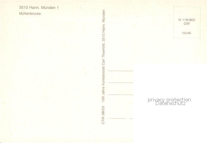 72958299 Hann. Muenden Muehlenbruecke postalisch nicht gelaufen Erhaltung siehe scans [FriedD77] KatCode: 11110003152016