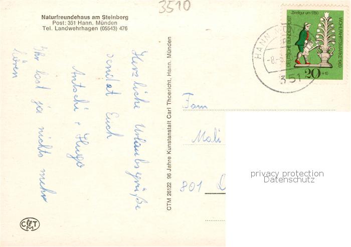 73865495 alte Postkarte Hann. Muenden Naturfreundehaus am steinberg Landschaftspanorama postalisch gelaufen Erhaltung siehe scans [FriedD77] KatCode: 11110003152016