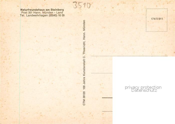 73870247 Hann. Muenden Naturfreundehaus am Steinberg postalisch nicht gelaufen Erhaltung siehe scans [WerneD78] KatCode: 11110003152016