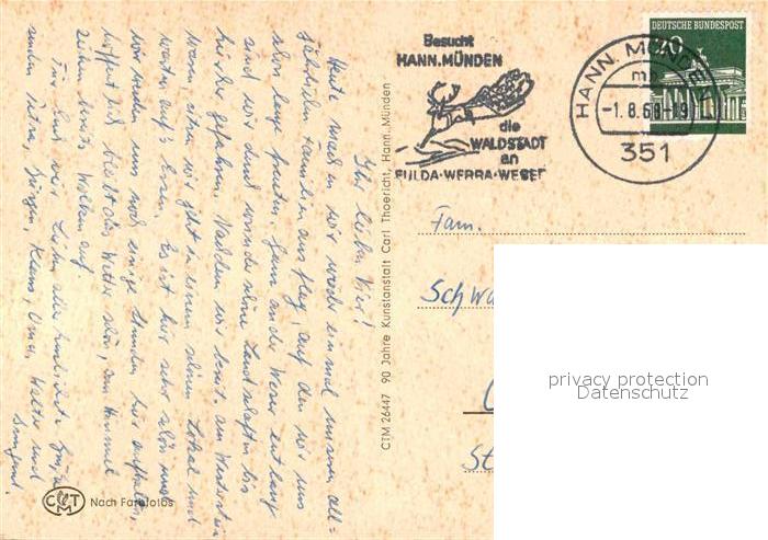 72909469 alte Postkarte Hann. Muenden Ortspartien postalisch gelaufen Erhaltung siehe scans [LiesaD40] KatCode: 11110003152016