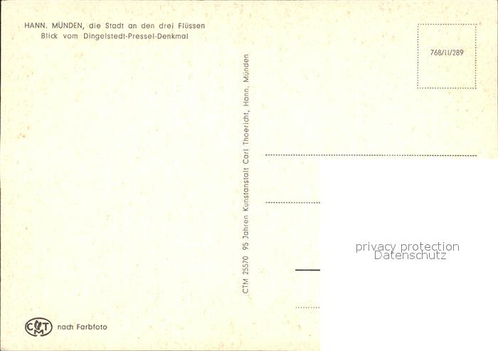 72270708 Hann. Muenden Panorama Blick vom Dingelstedt Pressel Denkmal postalisch nicht gelaufen Erhaltung siehe scans KatCode: 11110003152016