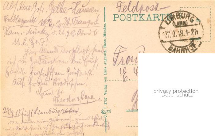 73806181 alte Postkarte Hann. Muenden Panorama Feldpost postalisch gelaufen Erhaltung siehe scans [WerneD78] KatCode: 11110003152016