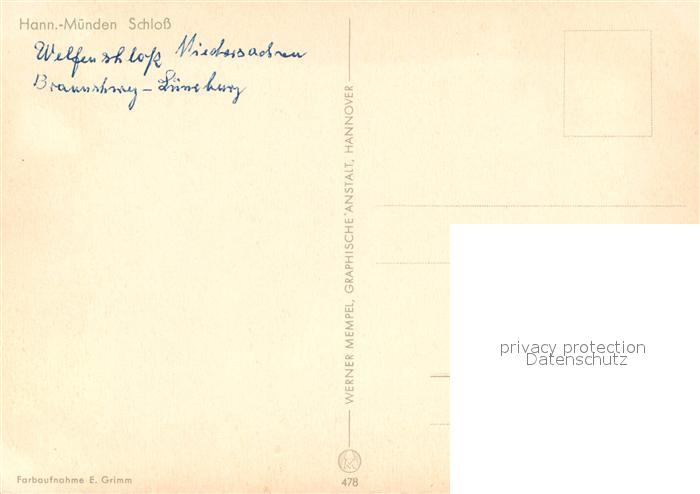 73176500 Hann. Muenden Schloss postalisch nicht gelaufen Erhaltung siehe scans [FriedD77] KatCode: 11110003152016