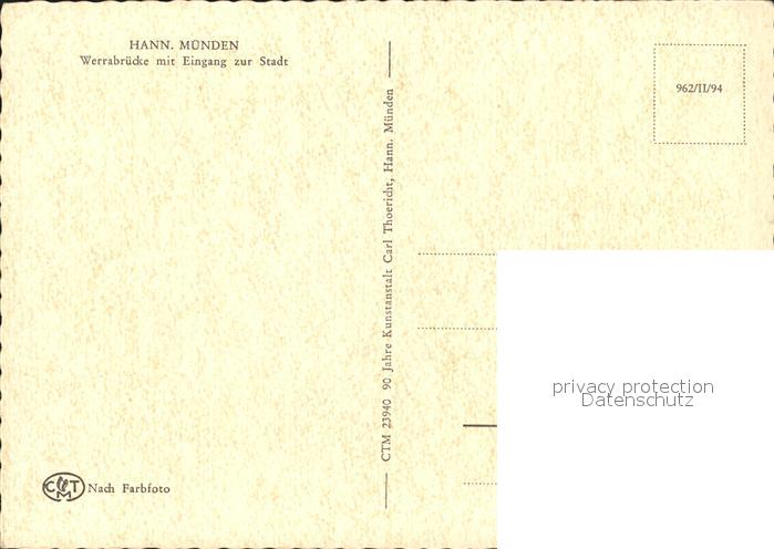 71947329 Hann. Muenden Werrabruecke mit Eingang zur Stadt Kirche postalisch nicht gelaufen Erhaltung siehe scans KatCode: 11110003152016