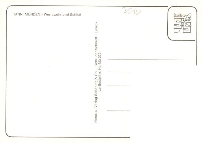 73936658 Hann. Muenden Werrawehr und Schloss postalisch nicht gelaufen Erhaltung siehe scans [WerneD78] KatCode: 11110003152016