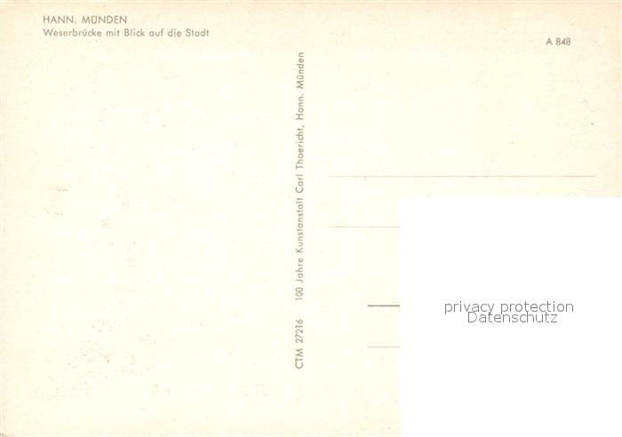 73320947 Hann. Muenden Weserbruecke mit Stadtblick Fliegeraufnahme postalisch nicht gelaufen Erhaltung siehe scans [WerneD78] KatCode: 11110003152016