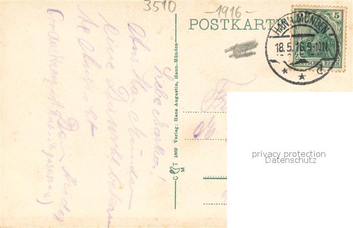 73692490 alte Postkarte Hann. Muenden Weserstein Abfahrt der Weserdampfer postalisch gelaufen Erhaltung siehe scans [WerneD78] KatCode: 11110003152016