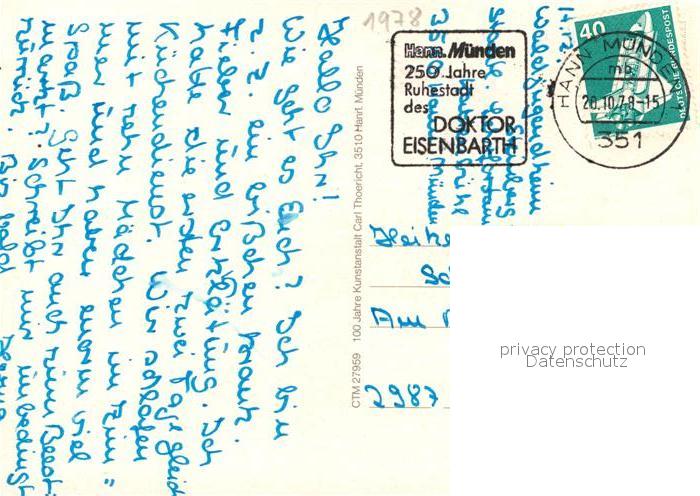 73063795 alte Postkarte Hann. Muenden Weserstein Rathaus Tillyschanze Schloss Langestrasse postalisch gelaufen Erhaltung siehe scans [FriedD77] KatCode: 11110003152016