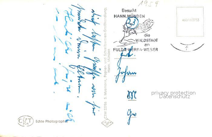73140923 alte Postkarte Hann. Muenden Zusammenfluss von Werra und Fulda zur Weser Fachwerkhaeuser Werrabruecke postalisch gelaufen Erhaltung siehe scans [FriedD77] KatCode: 11110003152016