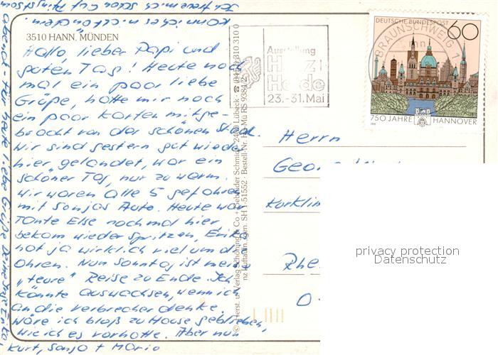 73323049 alte Postkarte Hann. Muenden Zusammenfluss von Werra und Fulda zur Weser Fliegeraufnahme postalisch gelaufen Erhaltung siehe scans [FriedD77] KatCode: 11110003152016