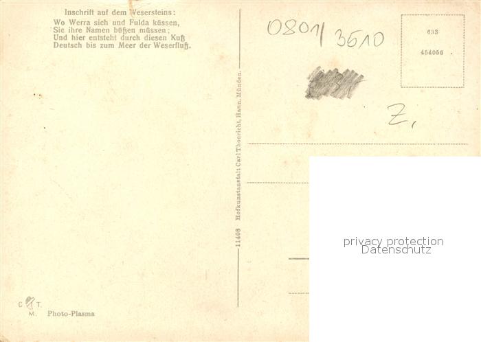73164205 Hann. Muenden Zusammenfluss von Werra und Fulda zur Weser Weserstein Dampfer postalisch nicht gelaufen Erhaltung siehe scans [FriedD77] KatCode: 11110003152016
