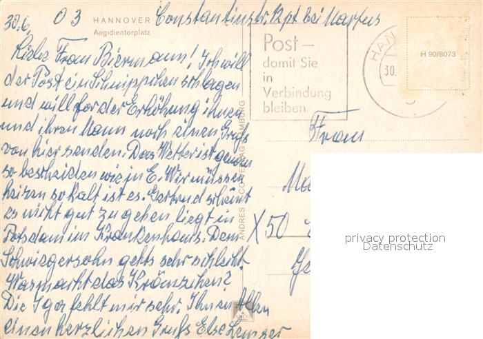 73065780 alte Postkarte HANNOVER CITY Aegidientorplatz postalisch gelaufen Erhaltung siehe scans [KathaD81] KatCode: 11110003241001