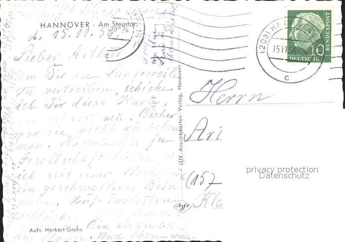 72079002 alte Postkarte HANNOVER CITY Am Steintor postalisch gelaufen Erhaltung siehe scans KatCode: 11110003241001