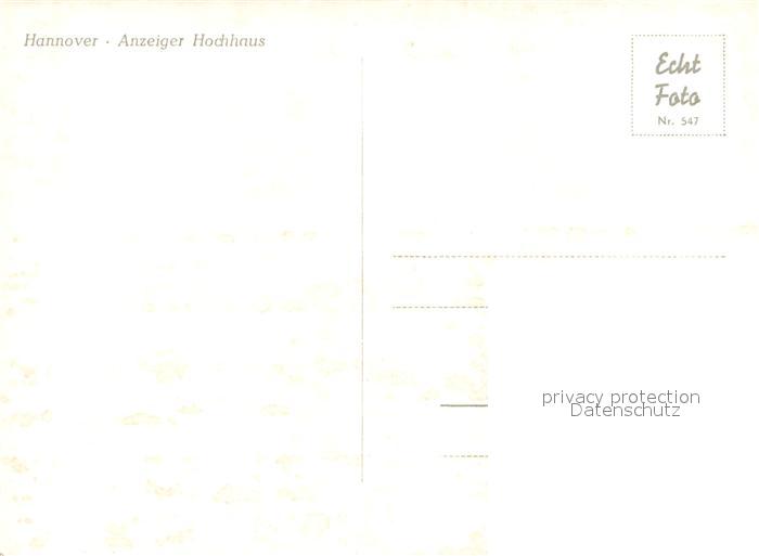 72928100 HANNOVER CITY Anzeiger Hochhaus postalisch nicht gelaufen Erhaltung siehe scans [AndreD76] KatCode: 11110003241001