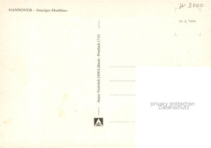 73127231 HANNOVER CITY Anzeiger Hochhaus bei Nacht postalisch nicht gelaufen Erhaltung siehe scans [LiesaD40] KatCode: 11110003241001