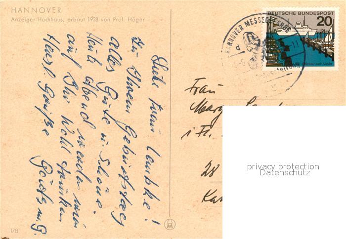 73043570 alte Postkarte HANNOVER CITY Anzeiger Hochhaus erbaut 1928 von Prof Hoeger postalisch gelaufen Erhaltung siehe scans [FriedD77] KatCode: 11110003241001