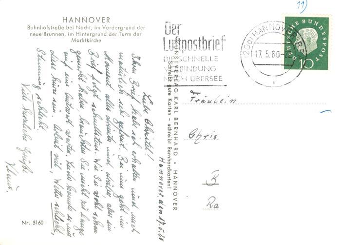 73924018 HANNOVER CITY Bahnhofstrasse bei Nacht Neuer Brunnen Turm der Marktkirche postalisch gelaufen Erhaltung siehe scans [WerneD78] alte Postkarte Wern Katcode 11110003241001