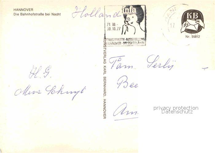 72869671 alte Postkarte HANNOVER CITY Bahnhofstrasse bei Nacht postalisch gelaufen Erhaltung siehe scans [LiesaD40] KatCode: 11110003241001