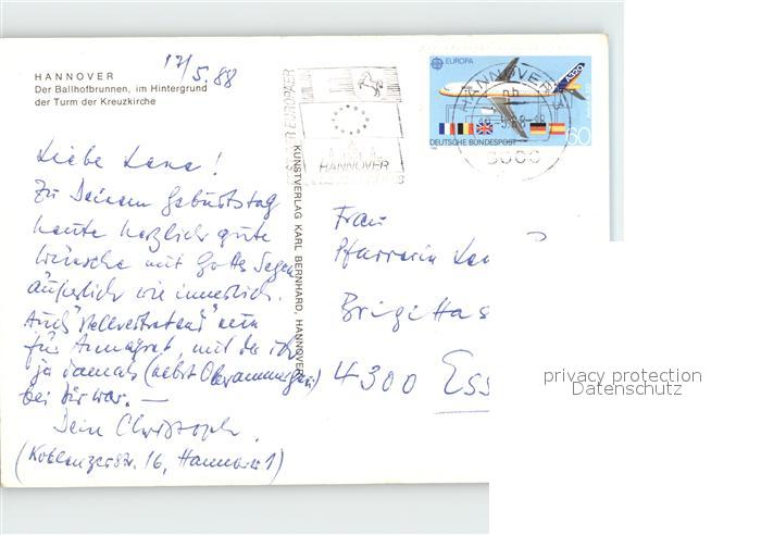 72037133 alte Postkarte HANNOVER CITY Ballhofbrunnen Turm Kreuzkirche postalisch gelaufen Erhaltung siehe scans KatCode: 11110003241001