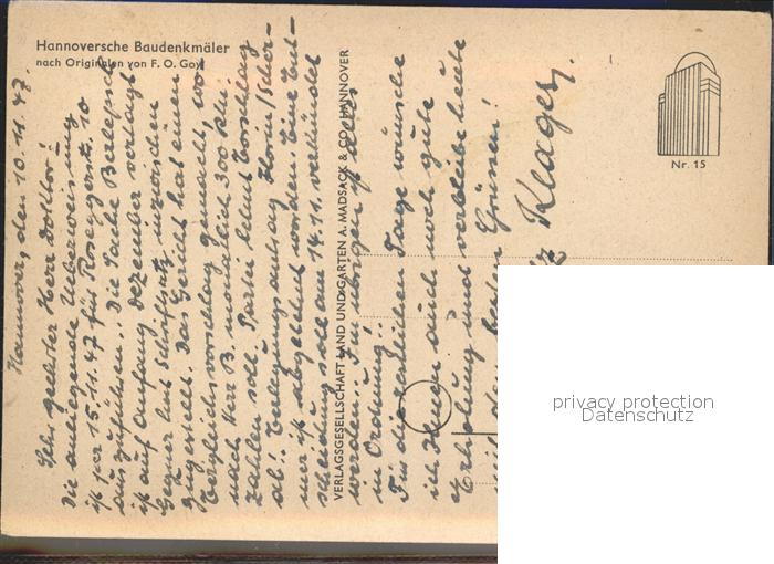 72003100 HANNOVER CITY Baudenkmaeler nach Originalen Von F O Goy postalisch nicht gelaufen Erhaltung siehe scans KatCode: 11110003241001