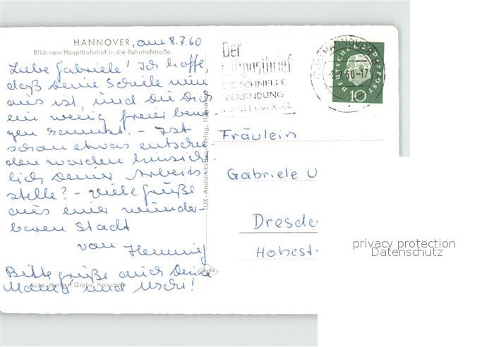 72412605 alte Postkarte HANNOVER CITY Blick vom Hauptbahnhof in die Bahnhofstrasse Nachtaufnahme postalisch gelaufen Erhaltung siehe scans KatCode: 11110003241001