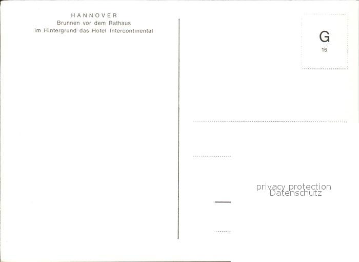 72570760 HANNOVER CITY Brunnen vor dem Rathaus Hotel Intercontinental postalisch nicht gelaufen Erhaltung siehe scans [AndreD76] KatCode: 11110003241001