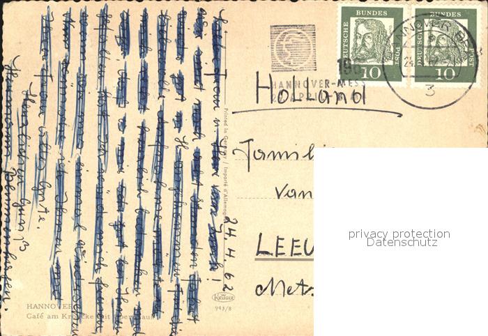 72428776 alte Postkarte HANNOVER CITY Cafe am Kroepcke mit Opernhaus postalisch gelaufen Erhaltung siehe scans KatCode: 11110003241001