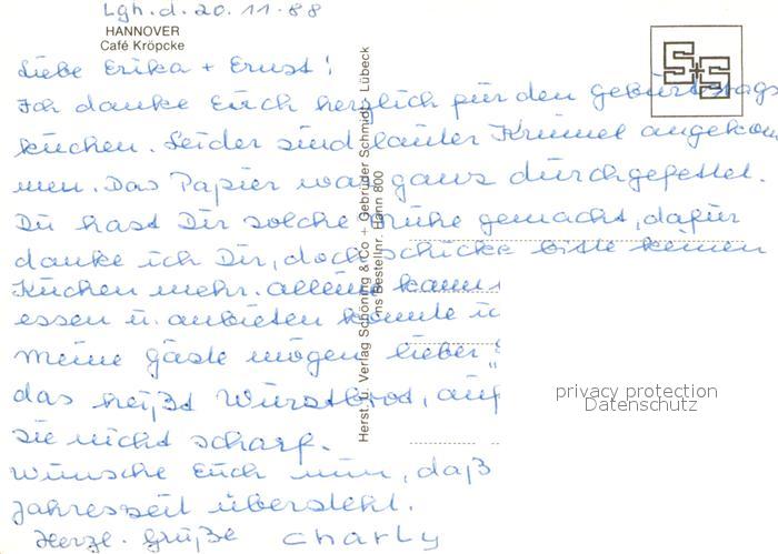 72950916 HANNOVER CITY Cafe Kroepcke postalisch nicht gelaufen Erhaltung siehe scans [WerneD78] KatCode: 11110003241001