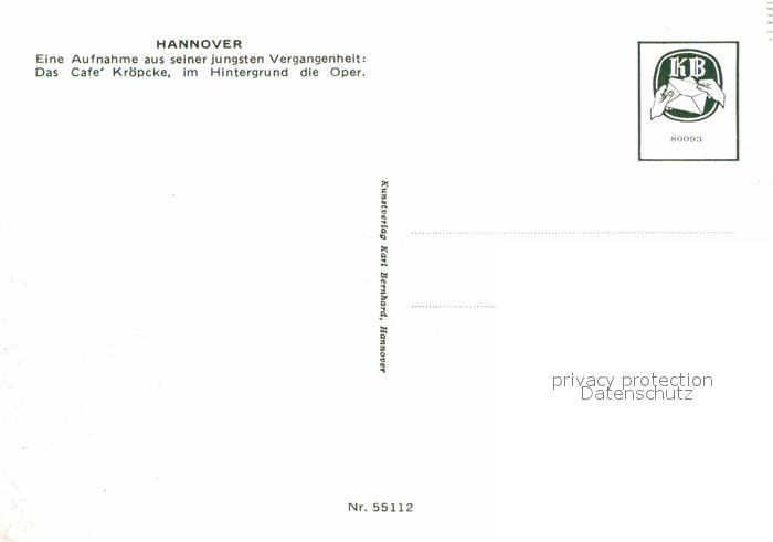 72758118 HANNOVER CITY Cafe Kroepcke mit Oper postalisch nicht gelaufen Erhaltung siehe scans [LiesaD40] KatCode: 11110003241001