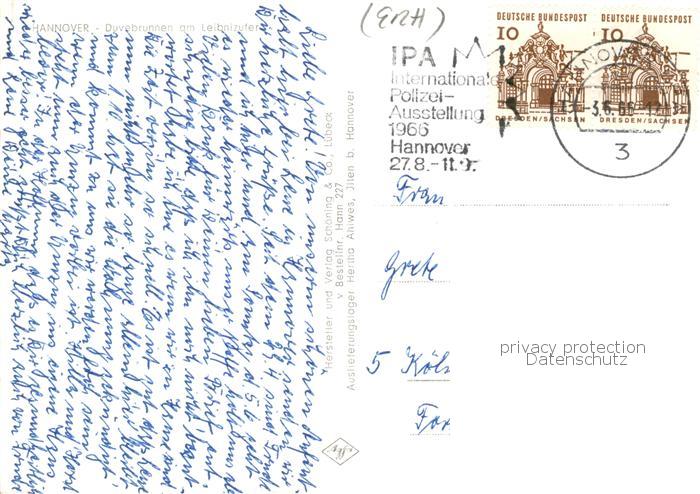 73846754 HANNOVER CITY Duvebrunnen am Leibnitzufer postalisch gelaufen Erhaltung siehe scans [FriedD77] alte Postkarte Frie Katcode 11110003241001
