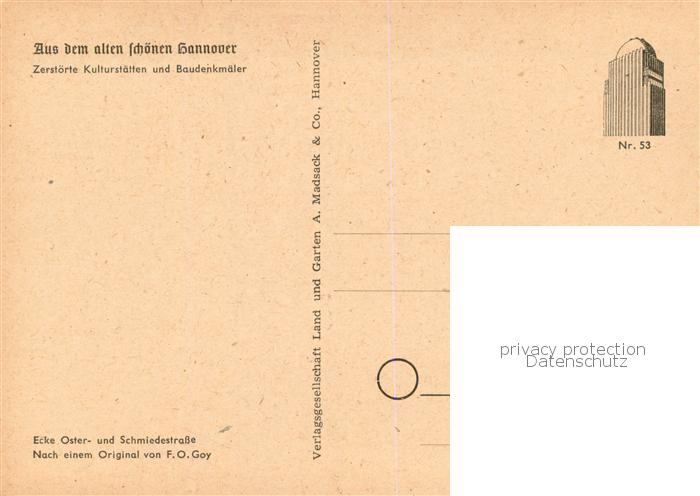 73769584 HANNOVER CITY Ecke Oster und Schmiedestrasse Zeichnung postalisch nicht gelaufen Erhaltung siehe scans [WerneD78] Wern Katcode 11110003241001