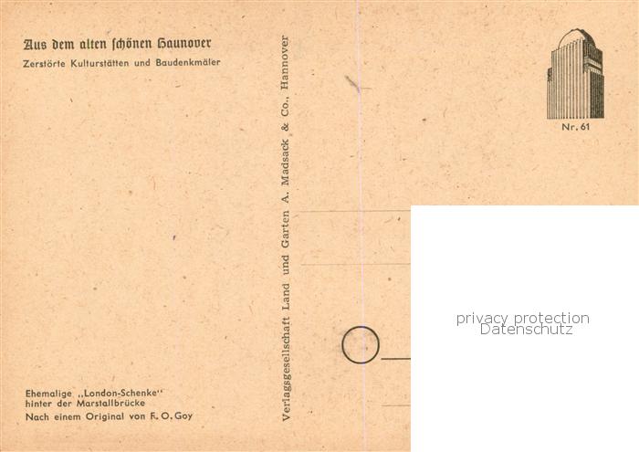 73769600 HANNOVER CITY Ehemalige London Schenke hinter der Marstallbruecke postalisch nicht gelaufen Erhaltung siehe scans [WerneD78] Wern Katcode 11110003241001