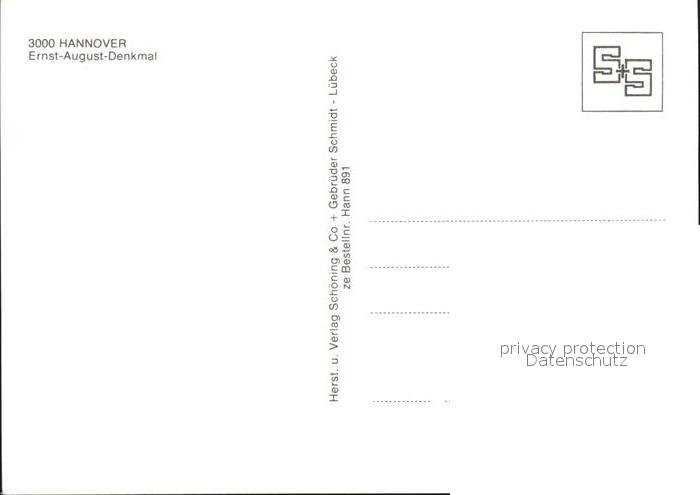 72082851 HANNOVER CITY Ernst August Denkmal postalisch nicht gelaufen Erhaltung siehe scans KatCode: 11110003241001